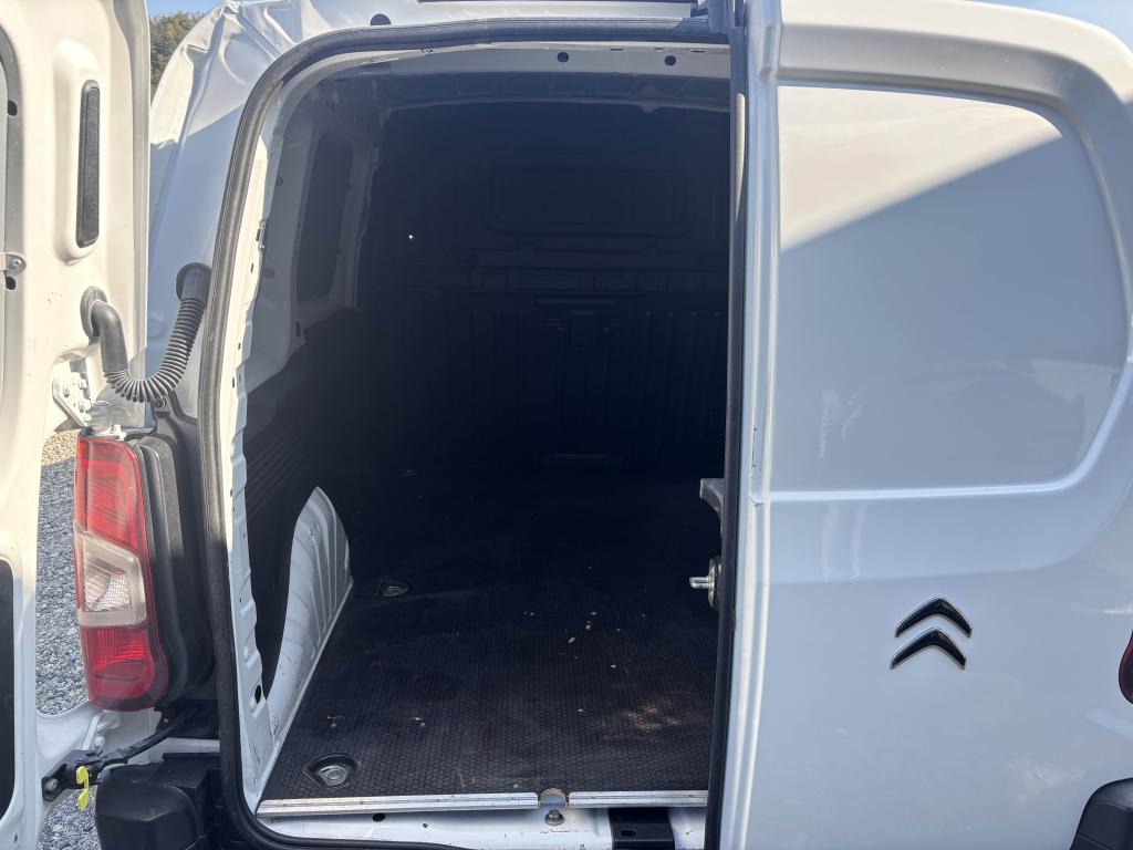 6 anneaux d'arrimage en zone de chargementABS avec répartiteur électronique de freinage (REF) et aide au freinage d'urgence (AFU)Aide au démarrage en côteAide au stationnement arrièreAirbag frontal conducteurAllumage automatique des projecteursBac de porte avantBaguettes de protection latérales noires teintées masseBoîte à gants supérieure Top Box fermée (réfrigérée si climatisation)Bouchon / trappe à carburant verrouillablesBoucliers noirs teintés masseCapucine transversale de rangement ouverteCITROËN Connect Box avec Pack SOS et assistance inclusClimatisation manuelleCloison pleine fixe (avec crochet porte-habit)Commande du système audio au volantCondamnation centralisée avec plip 3 boutonsContrôle dynamique de conduite (ESP) avec fonction anti-patinage (ASR)Coques de rétroviseurs noires teintées masseDétection de sous-gonflage indirecteEclairage d'accueil et d'accompagnementEssuie-vitre avant avec système de lavage 'Magic Wash'Frein de stationnement électriqueJantes tôle 15'' grises avec cabochonLève-vitres avant électriquesOrdinateur de bordPeinture opaque Blanc BanquisePneumatiques 195/65 R15Poignées de portes extérieures noires teintées massePorte latérale droite coulissante tôléePortes arrières battantes tôlées 60/40 avec ouverture à 180°Prise 12 V sur planche de bordProjecteurs antibrouillardRails de PLC avec enjoliveurs noirs teintés masseRangement fermé derrière le combinéRégulateur et limiteur de vitesseRétroviseurs extérieurs réglables électriquement et dégivrantsRoue de secours homogèneSellerie tissu Mica GreySiège conducteur confort avec réglage en hauteur, réglage lombaire, rangement sous siège et accoudoirSiège passager individuel réglable en inclinaison et en longueurSystème audio MP3 4HP avec kit mains libres Bluetooth et prise USBTapis en PVC dans l'habitacleVolant mousséVolant réglable en hauteur et en profondeurZone de dépose pour smartphone