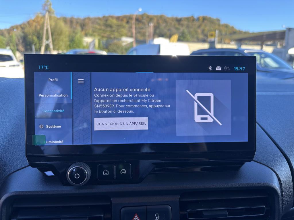 3 sièges arrière indépendants escamotables en rang 2ABS avec aide au freinage d'urgenceAide au démarrage en côteAide au stationnement arrièreAirbags frontaux, latéraux AV et rideauxAllumage automatique des projecteursAmbiance Urban GreyBarres de toit longitudinales noires brillantesBluetoothBoîte à gants inférieure ferméeBoîte à gants Top Box réfrigéréeCaméra de recul avec Top Rear VisionCapucine de pavillonCitroën Connect SOS et assistanceClimatisation automatique bi-zoneCombiné Numérique 10'' couleurCommutation automatique des feux de routeCondamnation centralisée par plip HF avec 2 plipsContrôle dynamique de stabilité (ESP) et antipatinage des roues (ASR)Coques de rétroviseurs noir vernisDétecteur de sous-gonflageESCEssuie-glace à déclenchement automatiqueFeux diurnes Eco LEDFonction Mirror Screen (Apple Carplay / Android Auto ) sans filFrein de stationnement électriqueHayon arrière vitré avec essuie-glace et dégivrageJantes alliage 16''Lève-vitres avant et arrière (rang 2) électriques et séquentielsLunette arrière ouvrante surteintéePack SafetyPeinture opaque Blanc KaolinPneumatiques 205/60 R16 96HPoignées de portes extérieures couleur caissePorte latérale coulissante droitePorte latérale coulissante gaucheProjecteurs antibrouillardProjecteurs EcoLEDRadio numérique DAB sur écran tactile 10" couleur HDRangement fermé derrière le combinéRégulateur et limiteur de vitesseRétroviseurs extérieurs rabattables électriquementRétroviseurs extérieurs réglables électriquement et dégivrantsSécurité enfants électriqueSiège conducteur à réglage lombaire avec accoudoirSiège passager individuel rabattable avec accoudoirTablette arrière cache-bagages à 2 positionsTablette aviation au dos des sièges avantVitres entrebaillables en rang 2Vitres fixes en rang 3Vitres surteintées sur rangs 2 et 3Volant multifonctions cuir