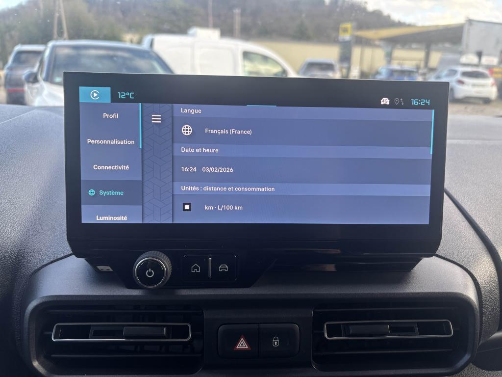 3 sièges arrière indépendants escamotables en rang 2ABS avec aide au freinage d'urgenceAide au démarrage en côteAide au stationnement arrièreAirbags frontaux, latéraux AV et rideauxAllumage automatique des projecteursAmbiance Urban GreyBarres de toit longitudinales noires brillantesBluetoothCâble de recharge Wallbox 7,4kW monophasé Mode 3 pour prise Type 2Caméra de recul avec Top Rear VisionCapucine de pavillonChargeur embarqué 7kW (AC) / 100kW (DC)Citroën Connect SOS et assistanceClimatisation automatique bi-zoneCombiné Numérique 10'' couleurCommutation automatique des feux de routeCondamnation centralisée avec 1 plip HF + 1 cléContrôle dynamique de stabilité (ESP) et antipatinage des roues (ASR)Coques de rétroviseurs noir vernisDétecteur de sous-gonflageESCEssuie-glace à déclenchement automatiqueFeux diurnes Eco LEDFixation ISOFIX sur sièges rang 2Fonction Mirror Screen (Apple Carplay / Android Auto ) sans filFrein de stationnement électriqueHayon arrière vitré avec essuie-glace et dégivrageJantes alliage 16''Lève-vitres avant et arrière (rang 2) électriques et séquentielsLunette arrière ouvrante surteintéePack SafetyPeinture opaque Blanc KaolinPneumatiques 205/60 R16 95UPoignées de porte extérieures noires verniesPoignées de portes extérieures couleur caissePorte latérale coulissante droitePorte latérale coulissante gaucheProjecteurs antibrouillardProjecteurs EcoLEDRégulateur et limiteur de vitesseRétroviseurs extérieurs réglables électriquement et dégivrantsRétroviseurs extérieurs rabattables électriquementRadio numérique DAB sur écran tactile 10" couleur HDRangement fermé derrière le combinéSécurité enfants électriqueSiège conducteur à réglage lombaire avec accoudoirSiège passager individuel rabattable avec accoudoirTablette arrière cache-bagages à 2 positionsTablette aviation au dos des sièges avantVitres fixes en rang 3Vitres surteintées sur rangs 2 et 3Volant multifonctions cuir