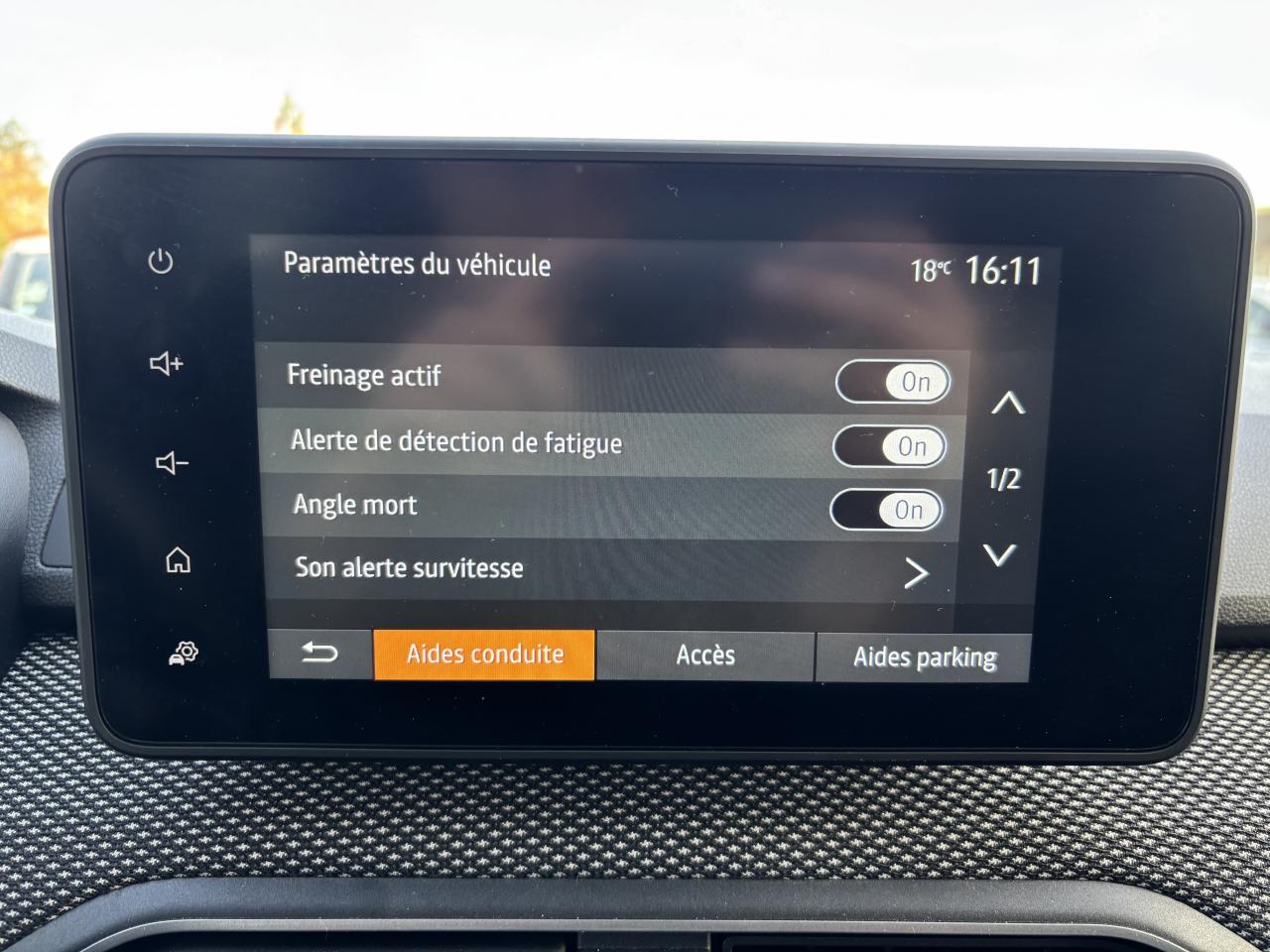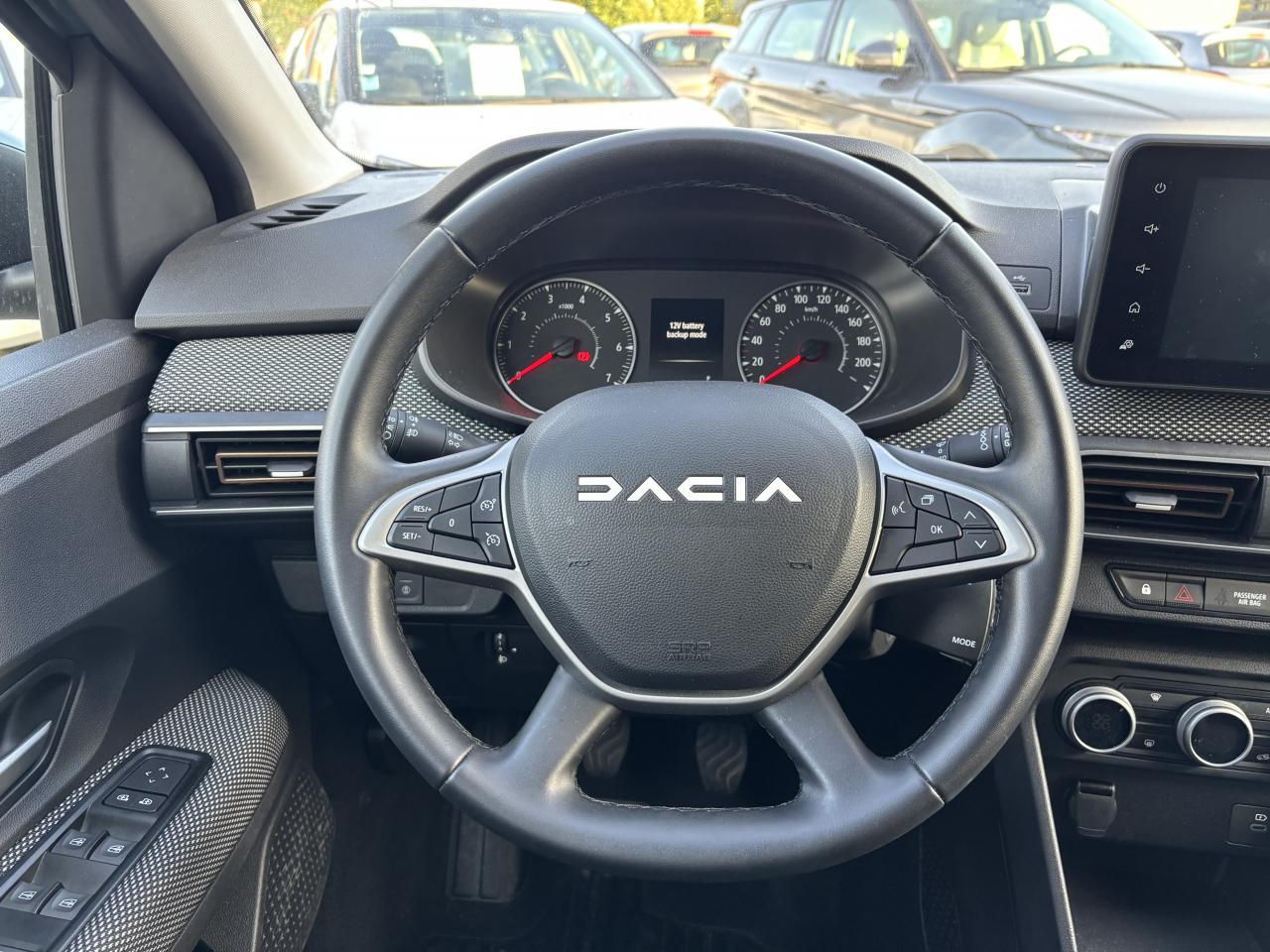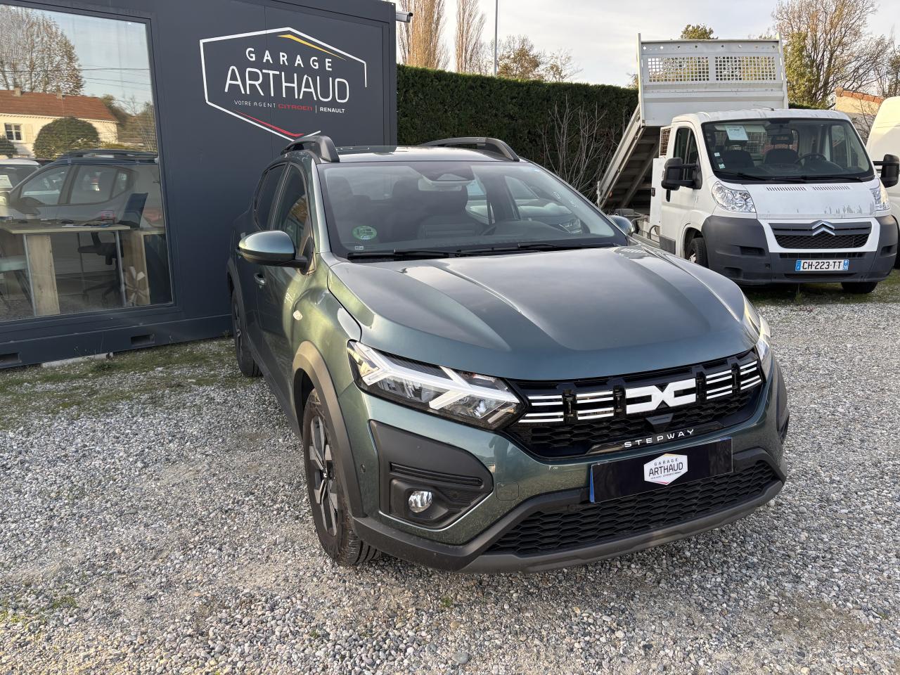 2 poignées de maintien passager arrière + 1 passager avant3 appuie-tête arrièreABS avec aide au freinage d'urgenceAccoudoir au siège conducteur avantAérateurs avec inserts BlancAide au démarrage en côteAide au maintien dans la voieAide au stationnement arrièreAirbags conducteur et passager désactivableAirbags latéraux épaules et rideauxAlerte de survitesse avec reconnaissance des panneaux de signalisationAnti-patinage (ASR)Appel d'urgence - EcallBanquette arrière rabattable et fractionnable 1/3-2/3Barres de toit longitudinales modulaires Gris MégalitheBoucliers avant et arrière ton carrosserieBouton "My Safety "Calandre avec inscription « Stepway » blancCentre des aérateurs Brun CuivréChauffage et ventilation à 4 vitesses, avec recyclage de l’airClimatisation manuelleCommandes de réglage sur le panneau de porte conducteurCondamnation automatique des portes en roulantCondamnation électrique des portes à distanceConsole centrale avec rangement ouvertContour des aérateurs Fog GreyContrôle de pression des pneus ( TPMS )Crochet escamotable côté passagerDécor Pied A + B + C NoirDétecteur de pluie et allumage automatique des projecteursDirection assistée électriqueEnjoliveur Flexwheel 16" Atara DarkEnregistreur de données d’événements (accident)Feux arrière avec signature Dacia en YFeux clignotants latéraux répétés sur l'aileFeux de brouillard avant avec enjoliveurs noirs brillantFeux de jour automatiques à LEDFrein de stationnement mécaniqueFreinage actif d’urgence piéton/cycliste/inter-urbain (AEBS)Kit de gonflageLettrage Dacia arrière blancLève-vitres Anti-pincement côté conducteurLève-vitres arrière électriquesLève-vitres avant électriques conducteur et passagerLève-vitres conducteur impulsionnelle + commande côté passager avantLimiteur de vitesse avec avertisseur sonoreMedia DisplayMiroir de courtoisie côté conducteur et passagerNouvelle calandre avec nouveau Logo DaciaOrdinateur de bord : distance parcourue, vitesse moyenne, autonomie, consommation moyennePanneaux de portes avant avec insert Gris et textile MoebiasPassage de roues et bas de caisse latéraux noirsPeinture Blanc GlacierPhares à double optique avec LEDPlafonnier avantPoignées de portes extérieures couleur caissePoignées de portes intérieures Gris AcierPrédisposition EthylotestPrise 12V à l'avantProgramme Eco-modeProjecteurs antibrouillardQR Code « Rescue Code » avant / arrièreRégulateur de vitesseRétroviseurs extérieurs couleur carrosserieRétroviseurs extérieurs réglables électriquementRevêtement tissu sur la planche de bord et accoudoirs portes avantSellerie spécifique StepwaySiège conducteur réglable en hauteurSignature lumineuse à LEDSkis avant / arrière Gris MégalitheStickers blancs sur les portes avantStickers protection latéraleSystème d'alerte de changement de voieSystème de contrôle de trajectoire (ESC)Système de fixation Isofix pour siège enfant aux places latérales arrièreSystème de surveillance de l'attention du conducteurSystème Stop & StartTableau de bord avec écran numérique 3,5'' et compteurs analogiquesVolant réglable en hauteur et en profondeurVolant Soft Feel (TEP) avec nouveau logo Dacia
