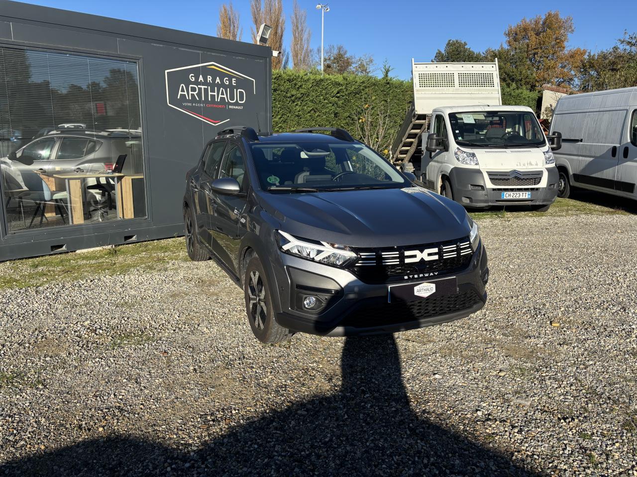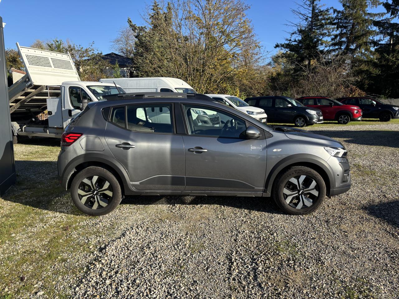 2 poignées de maintien passager arrière + 1 passager avant3 appuie-tête arrièreABS avec aide au freinage d'urgenceAccoudoir au siège conducteur avantAérateurs avec inserts BlancAide au démarrage en côteAide au maintien dans la voieAide au stationnement arrièreAirbags conducteur et passager désactivableAirbags latéraux épaules et rideauxAlerte de survitesse avec reconnaissance des panneaux de signalisationAnti-patinage (ASR)Appel d'urgence - EcallBanquette arrière rabattable et fractionnable 1/3-2/3Barres de toit longitudinales modulaires Gris MégalitheBoucliers avant et arrière ton carrosserieBouton "My Safety "Calandre avec inscription « Stepway » blancCentre des aérateurs Brun CuivréChauffage et ventilation à 4 vitesses, avec recyclage de l’airClimatisation manuelleCommandes de réglage sur le panneau de porte conducteurCondamnation automatique des portes en roulantCondamnation électrique des portes à distanceConsole centrale avec rangement ouvertContour des aérateurs Fog GreyContrôle de pression des pneus ( TPMS )Crochet escamotable côté passagerDécor Pied A + B + C NoirDétecteur de pluie et allumage automatique des projecteursDirection assistée électriqueEnjoliveur Flexwheel 16" Atara DarkEnregistreur de données d’événements (accident)Feux arrière avec signature Dacia en YFeux clignotants latéraux répétés sur l'aileFeux de brouillard avant avec enjoliveurs noirs brillantFeux de jour automatiques à LEDFrein de stationnement mécaniqueFreinage actif d’urgence piéton/cycliste/inter-urbain (AEBS)Kit de gonflageLettrage Dacia arrière blancLève-vitres Anti-pincement côté conducteurLève-vitres arrière électriquesLève-vitres avant électriques conducteur et passagerLève-vitres conducteur impulsionnelle + commande côté passager avantLimiteur de vitesse avec avertisseur sonoreMedia DisplayMiroir de courtoisie côté conducteur et passagerNouvelle calandre avec nouveau Logo DaciaOrdinateur de bord : distance parcourue, vitesse moyenne, autonomie, consommation moyennePanneaux de portes avant avec insert Gris et textile MoebiasPassage de roues et bas de caisse latéraux noirsPeinture Blanc GlacierPhares à double optique avec LEDPlafonnier avantPoignées de portes extérieures couleur caissePoignées de portes intérieures Gris AcierPrédisposition EthylotestPrise 12V à l'avantProgramme Eco-modeProjecteurs antibrouillardQR Code « Rescue Code » avant / arrièreRégulateur de vitesseRétroviseurs extérieurs couleur carrosserieRétroviseurs extérieurs réglables électriquementRevêtement tissu sur la planche de bord et accoudoirs portes avantSellerie spécifique StepwaySiège conducteur réglable en hauteurSignature lumineuse à LEDSkis avant / arrière Gris MégalitheStickers blancs sur les portes avantStickers protection latéraleSystème d'alerte de changement de voieSystème de contrôle de trajectoire (ESC)Système de fixation Isofix pour siège enfant aux places latérales arrièreSystème de surveillance de l'attention du conducteurSystème Stop & StartTableau de bord avec écran numérique 3,5'' et compteurs analogiquesVolant réglable en hauteur et en profondeurVolant Soft Feel (TEP) avec nouveau logo Dacia