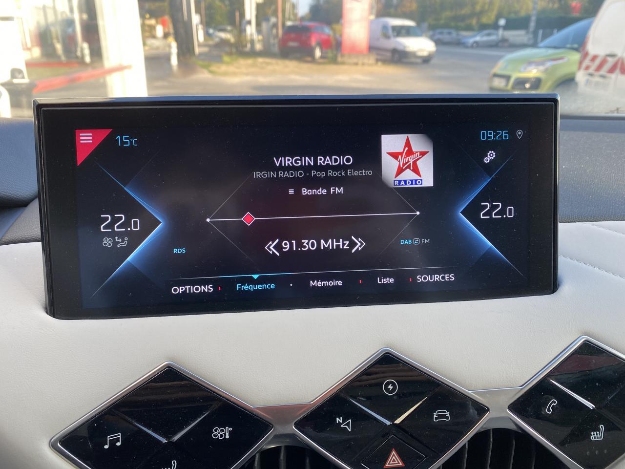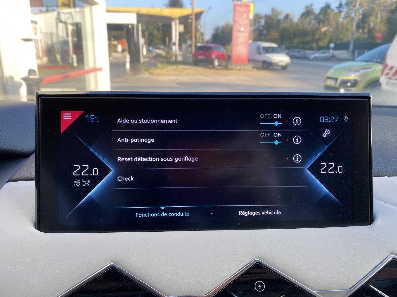 3e feu stop à LEDABS avec répartiteur électronique de freinage (REF) et aide au freinage d'urgence (AFU)ADML PROXIMITY avec DS CONNECT BOXAffichage tête hauteAide au démarrage en penteAirbags frontaux, conducteur et passager avant, avec désactivation par clé de l'airbag passagerAirbags latéraux arrière de thoraxAirbags latéraux type "thorax" pour conducteur et passager avantAirbags rideaux aux places avant et arrièreAlerte Active de Franchissement Involontaire de Ligne (AAFIL)Allumage automatique des feux de détresse en cas de forte décélérationAllumage automatique des pharesAntenne radio invisibleAppuis-tête AVAvertisseur de survitesseBanquette arrière 2/3 - 1/3 et 3 appuie-têtesBecquet de toitBoîte à gantsCalandre surmontée de l'emblème E-TENSECentre de roue BlancChargeur sans fil pour SmartphoneClignotants impulsionnels 3 coupsClimatisation automatiqueCombiné de bord numériqueCondamnation automatique des portes, du hayon et de la trappe à carburant en roulantContrôle de stabilité de l'attelageContrôle de Traction IntelligentContrôle dynamique de stabilité (ESP) avec antipatinage des roues (ASR)Coques de rétroviseurs extérieurs avec personnalisation Black LightningCrochets d'arrimage dans le coffreDémarrage par bouton poussoirDétection de sous-gonflage des pneumatiquesDirection à assistance variableDS Connect Box avec Pack SOS et assistance inclusDS Connect NAV et DS Connect Box avec Mirror Screen et radio numériqueDS MATRIX LED VISIONEclairage d'accompagnementEclairage d'accueil automatiqueEclairage de coffreEclairage de plaque d’immatriculation à LEDEssuie-vitre arrière avec intermittence et indexation à la marche arrièreEssuie-vitre avant à déclenchement et cadencement automatiquesFaçade centrale à commandes sensitivesFeux arrière à LEDFeux de brouillard ARFeux diurnes à LEDFiltre à charbon actifFixations Isofix passager avant et places latérales arrièreFrein de stationnement électrique automatiqueGuide utilisateur numériqueInspiration DS RIVOLIJantes alliage 18" KYOTOKit de dépannage provisoire des pneumatiquesLève-vitres avant et arrière électriques, séquentiel et anti-pincement coté conducteurLunette arrière dégivranteMenu spécifique E-TENSEOrdinateur de bordPack Sécurité EtenduePare-brise teinté et acoustiquePavillon biton avec personnalisation Black LightningPieds de rétroviseurs extérieurs couleur carrosseriePoignées de maintien avant (coté passager)Poignées de portes affleurantes avec ouverture à l'approchePoignées de portes intérieures chroméesPort USB dans accoudoir central avantPorte-gobelets à l'avantPortières avec lécheurs de vitres invisiblesPrise 12 volts à l'avantRéglage en hauteur manuel du siège conducteurRégulateur et limiteur de vitesseRétroviseur intérieur électrochrome sans contourRétroviseurs extérieurs réglables électriquementRétroviseurs extérieurs rabattables électriquementRangements latérauxReconnaissance vocaleSélecteur de mode de conduiteSièges avant avec réglage de la longueur d'assiseSièges avant chauffantsSignature E-TENSE sur le hayon.Système audio sur tablette tactile 10,3" HD à 8 HP avec prise USB et BluetoothTémoin et alerte sonore de non-bouclage des ceintures de sécurité avant et arrièreTeinte Cristal PearlTrappe de recharge étanche côté gaucheVerrou sur porte conducteurVitres latérales arrière et lunette arrière surteintéesVolant Gris Galet en liaison avec l'Inspiration DS RIVOLIVolant réglable en hauteur et en profondeurZone De Danger (inclut avec DS CONNECT NAV pendant 3 ans)