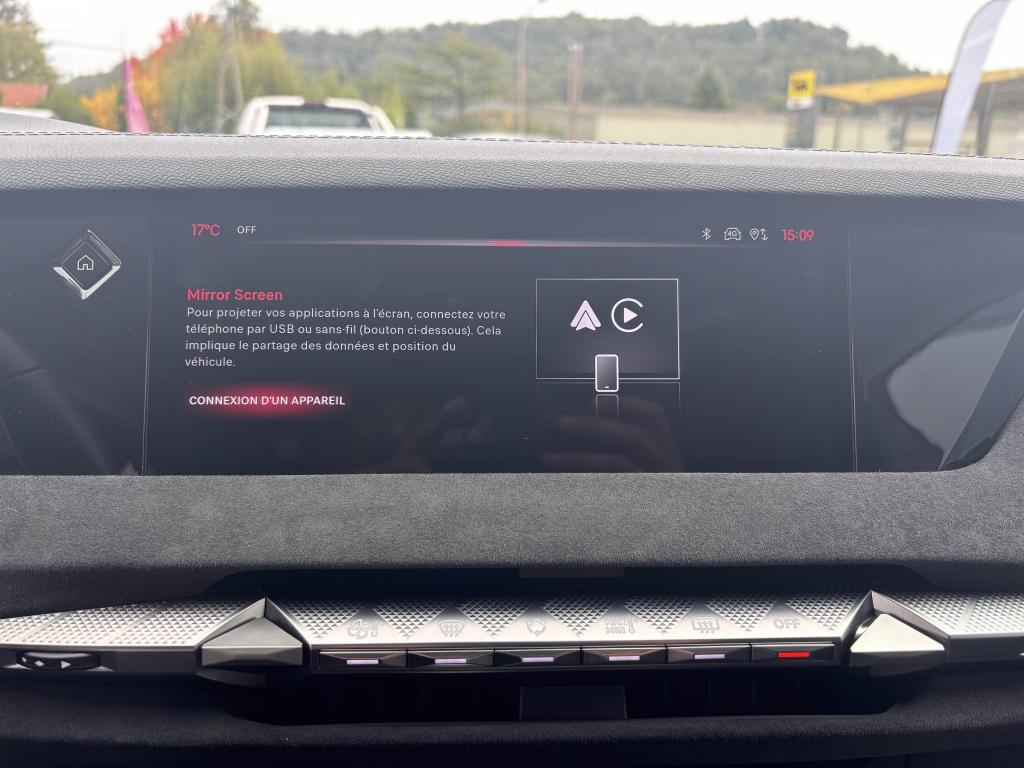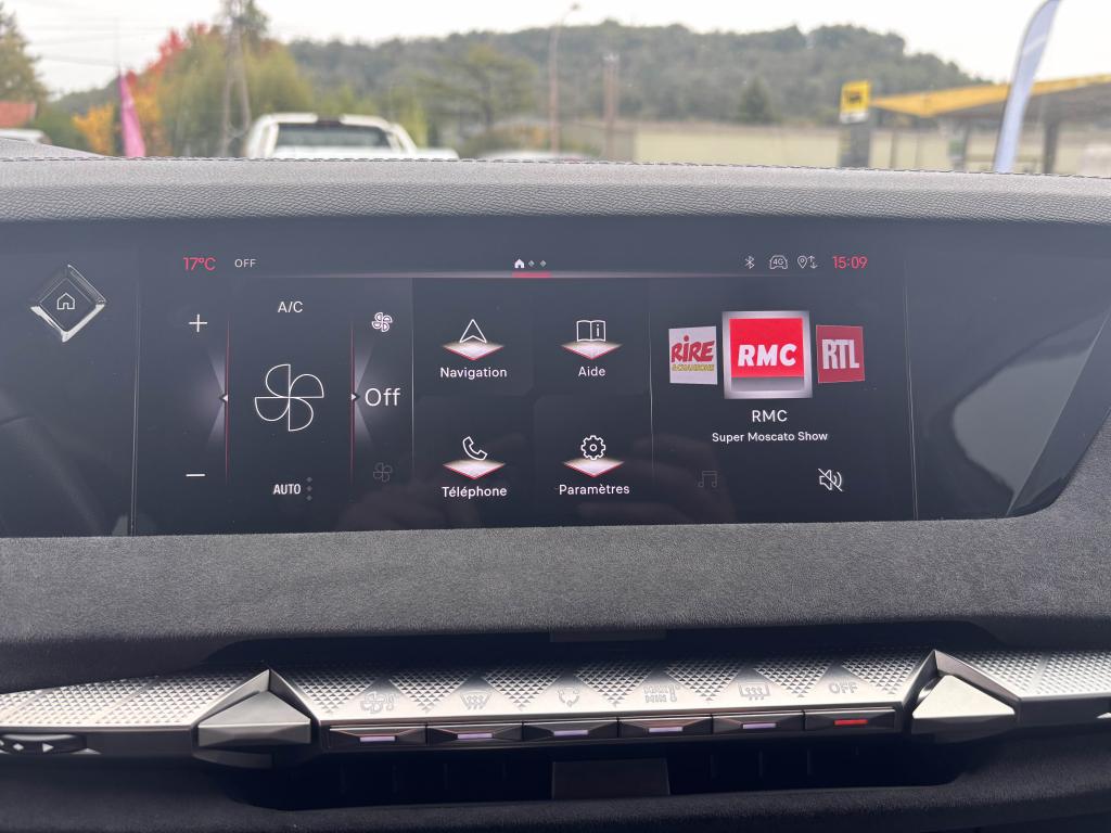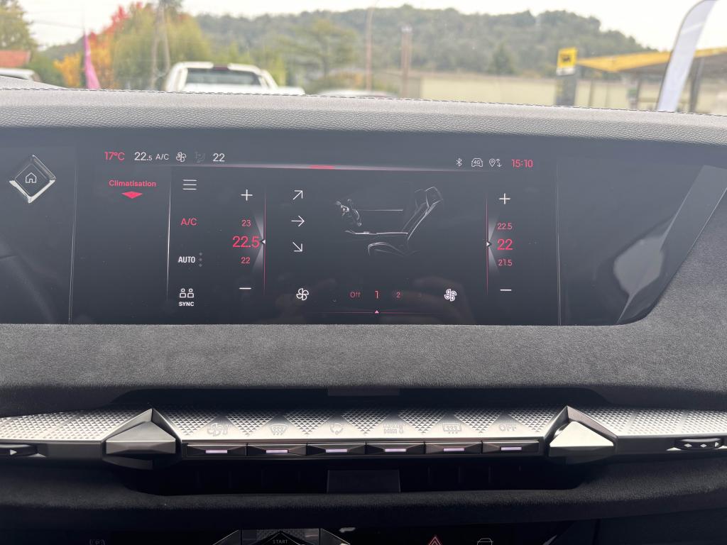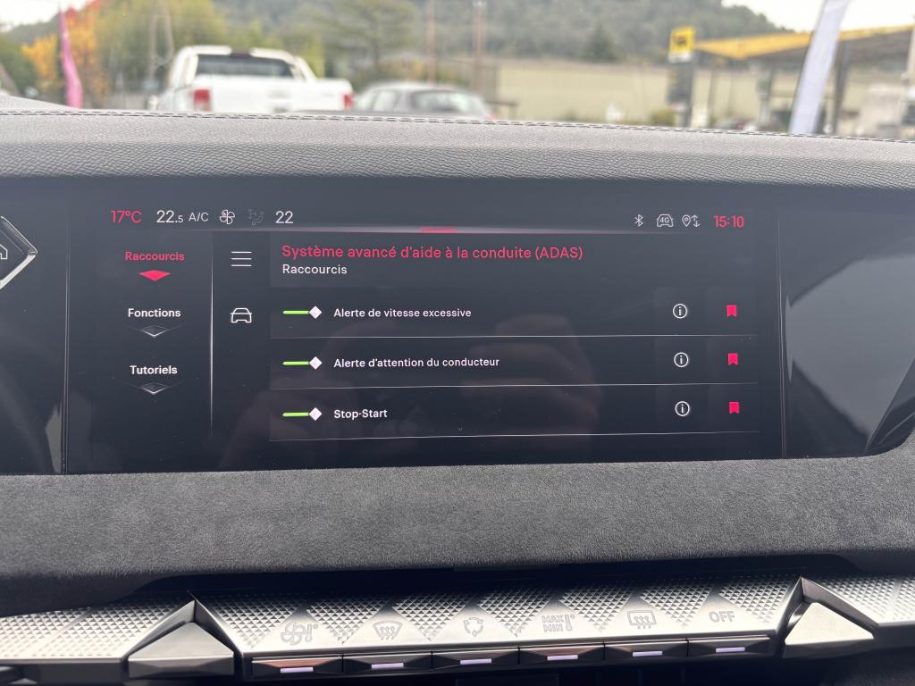 2 Prises USB C à l'arrièreABS avec répartiteur électronique de freinage (REF) et aide au freinage d'urgence (AFU)Accès et démarrage mains libres ProximityAccoudoir central arrière intégrant deux portes gobelets + trappe à skiAccoudoir central avant avec compartiment réfrigéréAccoudoir central avant éclairéAdaptive Cruise Control Stop & GoAérateurs aux places arrièresAide au démarrage en côteAide au stationnement avant et arrière + caméra de reculAirbag central entre les sièges avantAirbags frontaux conducteur et passager (déconnectable côté passager)Airbags latéraux de type «thorax» aux places avantAirbags rideaux aux places avant et arrièreAlerte attention conducteurAlerte de franchissement Involontaire de ligneAllumage automatique des projecteursAntenne de toit « aileron de requin »Avertisseur de risque de collisionBanquette arrière 2/3 - 1/3 et 3 appuie-têtesBlack PackBoîte à gants floquéeBoitiers de rétroviseurs extérieurs noir brillantCabochons de roue noir brillantCapot avant actifCiel de pavillon clairClimatisation automatique bi-zone, avec fonction REST, 3 modes de débit d'airCombiné instrumentation numérique 7"Commutation automatique des feux de routeCondamnation automatique des portes et du coffre en roulantConnection USB type C (dans l'accoudoir central avant)Console centrale avec compartiment de rangement ferméContrôle de stabilité de l'attelageContrôle dynamique de stabilité (ESP) avec antipatinage des roues (ASR)Détection de sous-gonflage des pneumatiquesDiffuseur AR noir brillant avec décors d'échappement chromésDS AIRDS E-TOGGLEDS EXTENDED HEAD UP DISPLAYEclairage à LED au niveau des piedsEclairage à LED dans l'accoudoir centralEclairage d'ambiance à LED personnalisableEclairage de la boîte à gant LEDEclairage du coffre à LEDEcran tactile capacitif 10,3’’ HDEnjoliveurs supérieurs des vitres latérales Noires BrillantesEssuie-glace à déclenchement automatiqueFeux arrière Full LED effet 3D avec traitement écaillesFixations Isofix pour siège passager avant et places latérales arrièreFrein de stationnement électrique automatiqueFrein multi-collisionFreinage d'urgence automatique piloté par caméra et radarIntérieur Alcantara NoirJantes alliage 19'' MINNEAPOLISJonc sur volet noir brillantKit de dépannage provisoire des pneumatiquesLève-vitres électriques avant et arrière, séquentiels et antipincementLimiteur de vitesseLunette arrière chauffanteMirror Screen sans fil via WifiMonogramme DS chromé sur l'enjoliveur de custode latéral noir brillantMonogramme extérieur Noir brillant sur le capotMonogrammes arrière noir brillantMonogrammes avant noir matPack DS IRIS SYSTEMPalettes au volantPare-brise teinté et acoustiquePare-soleil avec miroirs de courtoisie occultables éclairés à LEDPédalier en aluminiumPeinture Noir Perla NeraPlafonnier I-DOMEPoignées de portes affleurantes ChroméesPrédisposition pour roue de secoursPrise 12V à l'avant et dans le coffrePrise USB type C dans le rangement de la console centraleProjecteurs avant LEDRadio NumériqueReconnaissance des panneaux de vitesse et préconisationReconnaissance étendue des panneaux de circulationRétroviseur intérieur électrochrome sans contourRétroviseurs extérieurs électriques, dégivrants et rabattables électriquementSeuil de coffre aluminiumSeuils de portes spécifiques à l’avantSièges avant avec réglages lombairesSOS & ASSISTANCESurtapis aux places avant et arrièreVérins d'ouverture et de maintien du capot moteurVitres arrière et lunette arrière surteintéesVolant réglable en hauteur et en profondeur