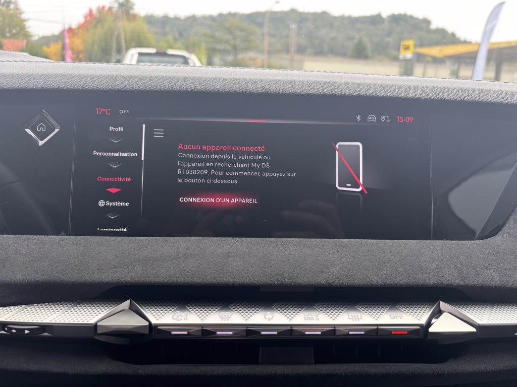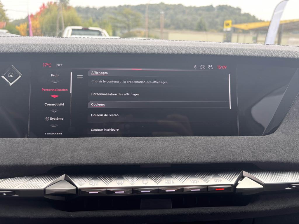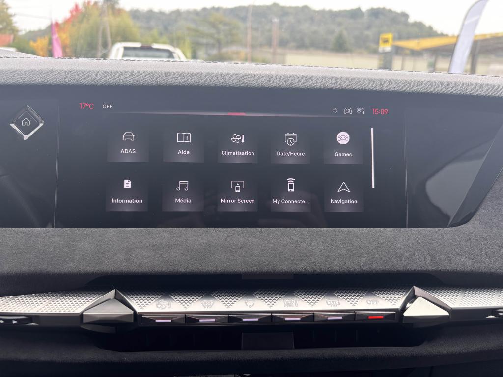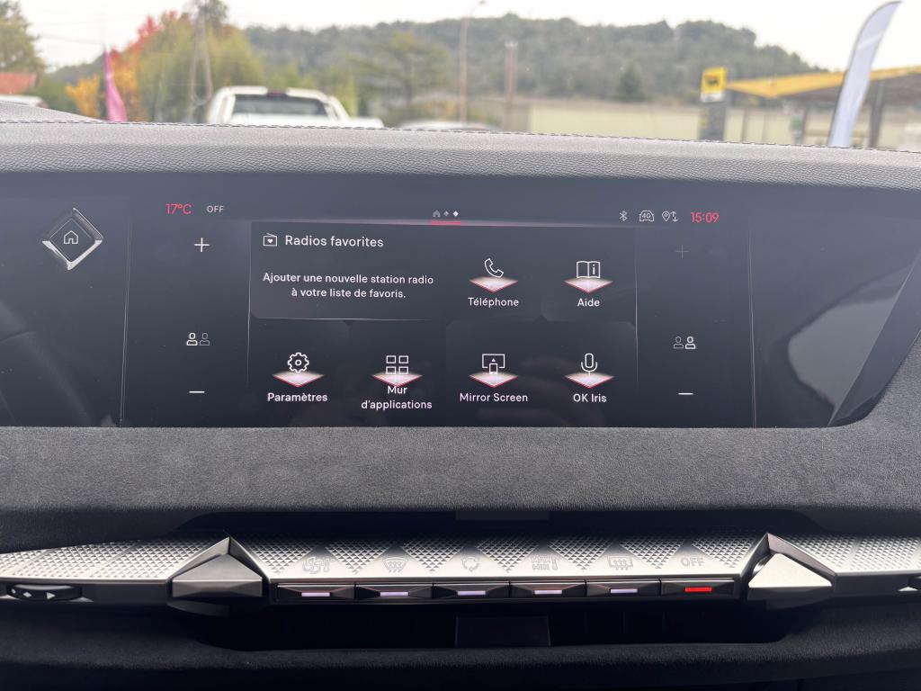 2 Prises USB C à l'arrièreABS avec répartiteur électronique de freinage (REF) et aide au freinage d'urgence (AFU)Accès et démarrage mains libres ProximityAccoudoir central arrière intégrant deux portes gobelets + trappe à skiAccoudoir central avant avec compartiment réfrigéréAccoudoir central avant éclairéAdaptive Cruise Control Stop & GoAérateurs aux places arrièresAide au démarrage en côteAide au stationnement avant et arrière + caméra de reculAirbag central entre les sièges avantAirbags frontaux conducteur et passager (déconnectable côté passager)Airbags latéraux de type «thorax» aux places avantAirbags rideaux aux places avant et arrièreAlerte attention conducteurAlerte de franchissement Involontaire de ligneAllumage automatique des projecteursAntenne de toit « aileron de requin »Avertisseur de risque de collisionBanquette arrière 2/3 - 1/3 et 3 appuie-têtesBlack PackBoîte à gants floquéeBoitiers de rétroviseurs extérieurs noir brillantCabochons de roue noir brillantCapot avant actifCiel de pavillon clairClimatisation automatique bi-zone, avec fonction REST, 3 modes de débit d'airCombiné instrumentation numérique 7"Commutation automatique des feux de routeCondamnation automatique des portes et du coffre en roulantConnection USB type C (dans l'accoudoir central avant)Console centrale avec compartiment de rangement ferméContrôle de stabilité de l'attelageContrôle dynamique de stabilité (ESP) avec antipatinage des roues (ASR)Détection de sous-gonflage des pneumatiquesDiffuseur AR noir brillant avec décors d'échappement chromésDS AIRDS E-TOGGLEDS EXTENDED HEAD UP DISPLAYEclairage à LED au niveau des piedsEclairage à LED dans l'accoudoir centralEclairage d'ambiance à LED personnalisableEclairage de la boîte à gant LEDEclairage du coffre à LEDEcran tactile capacitif 10,3’’ HDEnjoliveurs supérieurs des vitres latérales Noires BrillantesEssuie-glace à déclenchement automatiqueFeux arrière Full LED effet 3D avec traitement écaillesFixations Isofix pour siège passager avant et places latérales arrièreFrein de stationnement électrique automatiqueFrein multi-collisionFreinage d'urgence automatique piloté par caméra et radarIntérieur Alcantara NoirJantes alliage 19'' MINNEAPOLISJonc sur volet noir brillantKit de dépannage provisoire des pneumatiquesLève-vitres électriques avant et arrière, séquentiels et antipincementLimiteur de vitesseLunette arrière chauffanteMirror Screen sans fil via WifiMonogramme DS chromé sur l'enjoliveur de custode latéral noir brillantMonogramme extérieur Noir brillant sur le capotMonogrammes arrière noir brillantMonogrammes avant noir matPack DS IRIS SYSTEMPalettes au volantPare-brise teinté et acoustiquePare-soleil avec miroirs de courtoisie occultables éclairés à LEDPédalier en aluminiumPeinture Noir Perla NeraPlafonnier I-DOMEPoignées de portes affleurantes ChroméesPrédisposition pour roue de secoursPrise 12V à l'avant et dans le coffrePrise USB type C dans le rangement de la console centraleProjecteurs avant LEDRadio NumériqueReconnaissance des panneaux de vitesse et préconisationReconnaissance étendue des panneaux de circulationRétroviseur intérieur électrochrome sans contourRétroviseurs extérieurs électriques, dégivrants et rabattables électriquementSeuil de coffre aluminiumSeuils de portes spécifiques à l’avantSièges avant avec réglages lombairesSOS & ASSISTANCESurtapis aux places avant et arrièreVérins d'ouverture et de maintien du capot moteurVitres arrière et lunette arrière surteintéesVolant réglable en hauteur et en profondeur